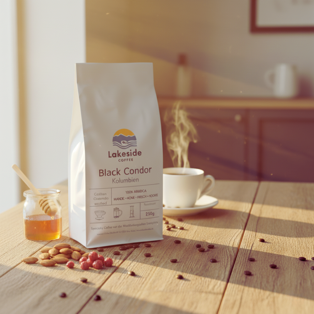 „Black Condor“ stammt aus einem fairen Kleinbauernprojekt in Kolumbien – mit Mandel, Honig und roten Früchten.