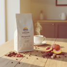 „Morgenrot“ vereint zwei Single Origins aus Brasilien und Guatemala zu einem runden, weichen Kaffee mit Schokolade, Pfirsich und Toffee.