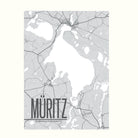 Gleich in zwei eleganten Varianten zeigt diese dekorative Karte der Müritz den stilisierten Straßenverlauf und das feine Wegenetz in der Umgebung des größten deutschen Binnensees.