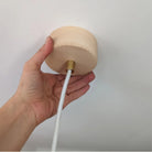 Der hier dargestellte Baldachin ist ein Allrounder - er passt optimal zu unseren Hängelampen mit Stoffkabel, aber auch zu jeder anderen Deckenlampe. Er wird aus hellem Ahornholz gefertigt, das eine ideale Farbharmonie zu den Holzlampen schafft. Die Oberfläche wird geschliffen und geölt - wie es auch bei den Lampen der Fall ist. Seine Befestigung ist simpel, aber effektiv: Ein Bajonettverschluss dreht sich fest und sichert somit den Baldachin an die Decke.